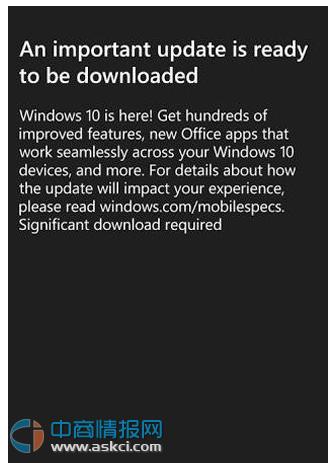 微軟WP8.1升級(jí)Win10 Mobile正式版推送更新界面曝光