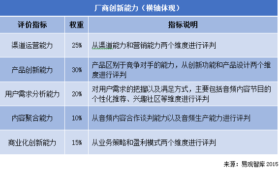 易觀智庫:2015年中國移動音頻市場實力矩陣解讀