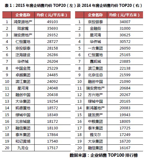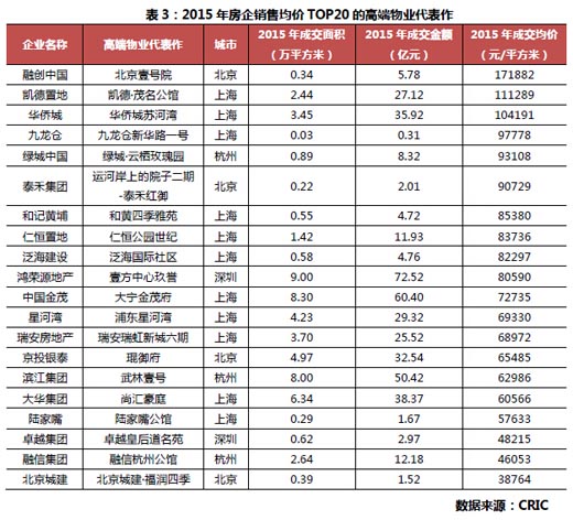 核心提示: 近日,CRIC研究中心發布了2015年中國房地產企業TOP100排行榜。我們將進一步解讀榜單中銷售均價最高的20家房企,和全國銷售均價最高的20個項目。企業銷近日,CRIC研究中心發布了2015年中國房地產企業TOP100排行榜。我們將進一步解讀榜單中銷售均價最高的20家房企,和全國銷售均價最高的20個項目。