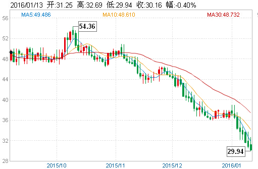 紐約時(shí)間1月13日14:30,NYMEX2月收升0.04美元,或0.1%,至每桶30.48美元。該合約周二盤中亦跌破每桶30美元,為2003年以來(lái)首見。