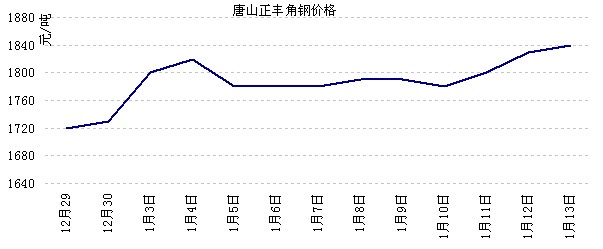 核心提示: 元旦期間,諸多鋼廠加入停產檢修的大部隊之中,產能下降,使得市場現貨資源明顯減少。在此消息炒作之下,鋼坯價格順勢拉漲,成品材市場也隨即跟漲,漲幅多在70-100元旦期間,諸多鋼廠加入停產檢修的大部隊之中,產能下降,使得市場現貨資源明顯減少。在此消息炒作之下,鋼坯價格順勢拉漲,成品材市場也隨即跟漲,漲幅多在70-100元/噸。假期結束后的第一個工作日,型材市場繼續保持上漲勢頭,當日正豐角鋼價格達到1820元/噸。但大幅拉漲后,高位成交受阻,價格繼續上行難度加大,遂次日價格沖高回落,隨后的一周便一直維持震蕩上行格局,但價格仍比假期前高出30-50元/噸(詳見圖1)。在此期間,鋼貿商的信心有效提振,囤貨補庫操作較前期增多,鋼廠方面也因此持續堅挺報價。