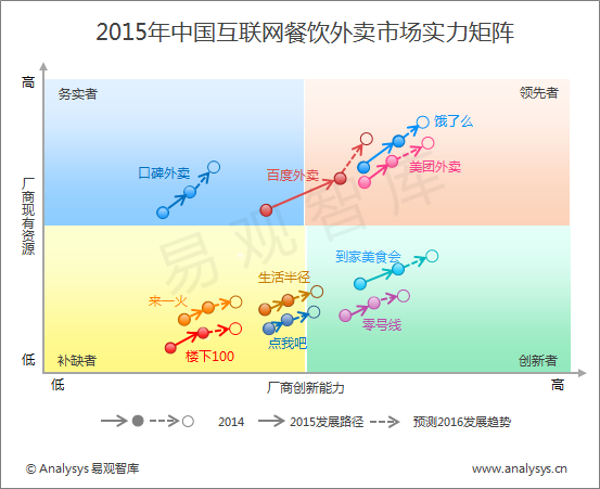 易觀智庫:2015年中國互聯網餐飲外賣市場實力矩陣解讀