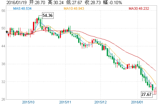 紐約時間1月19日14:30,NYMEX2月原油期貨合約收報每桶28.46美元,下跌0.96美元,或3.26%,為2003年9月以來的最低水平。美國市場周一因公共假日閉市。