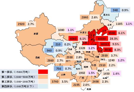 首先,推測之初我們必須先來認識下全國究竟有多少正在廝殺的企業。據研究中心統計,截止2014年,全國高爐產能10.73億。將全國31個省市的高爐生鐵規模分四個梯隊來看,其中5000萬規模以上的省份主要是河北、山東、江蘇、山西、遼寧5個省市;規模在2000-5000萬之間的第二梯隊的省市個數最多,有12個省市,依次為云南、河南、湖北、安徽、新疆、四川、內蒙古、天津、廣東、江西、上海、廣西;規模在1000-2000萬之間的第三梯隊的省市依次為湖南、福建、陜西、浙江、吉林、甘肅;排在末位規模還不到1000萬噸的省市依次為黑龍江、貴州、重慶、青海、寧夏。