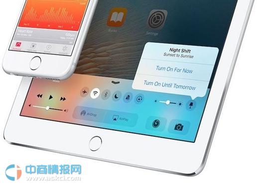 NightShift對設(shè)備硬件有要求,只有運(yùn)行iOS9.3的64位設(shè)備可用。NightShift功能開關(guān)出現(xiàn)在控制中心,應(yīng)該是眾望所歸的結(jié)果。