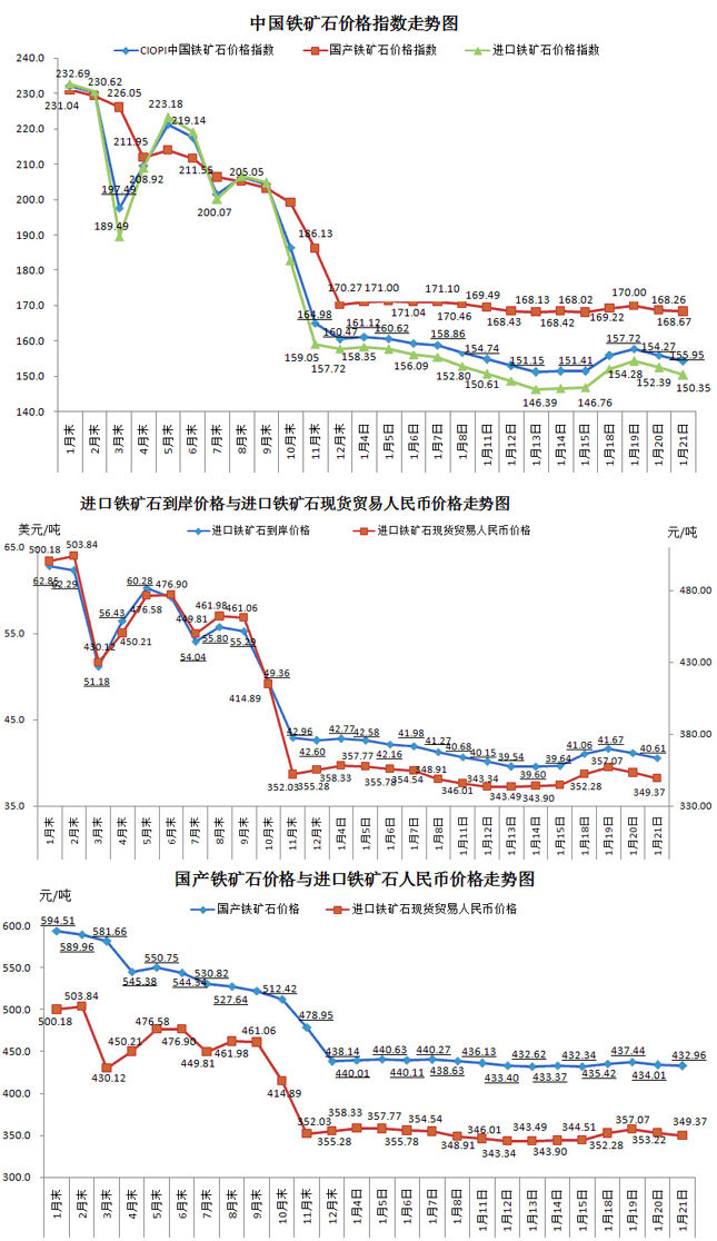 2016年1月21日中國鐵礦石價格指數對比分析
