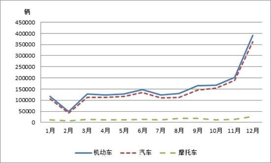 隨著中央和地方政府持續推進包括黃標車在內的老舊汽車報廢淘汰工作不斷深入,2015年,報廢汽車回收量延續了2014年快速增長的勢頭,除2月份受春節假期影響回收量小幅下降外,其他各月回收量均超過10萬輛,12月份達到36.2萬輛。與此同時,由于摩托車保有量的下降以及現行鼓勵報廢回收政策中不包括摩托車等方面原因,摩托車的回收量變化比較平穩。