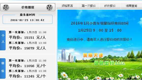 天津1月車牌競價快訊:個人第二次播報均價15679元/人
