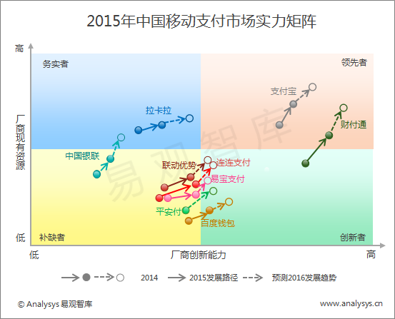 易觀智庫:2015年第三方移動支付市場實力矩陣解讀
