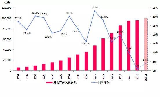 2全國房地產開發投資預計2016年增長4%左右