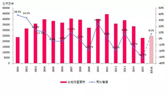 1全國房地產開發企業土地購置面積預計2016年增長8%左右