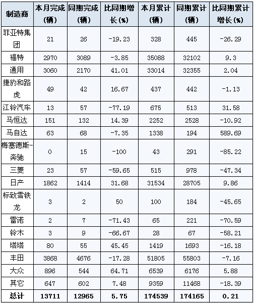 2015年12月南非輕型商用車分制造商銷量統(tǒng)計(jì)