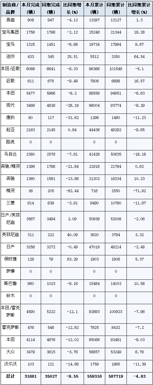 2015年12月加拿大乘用車分制造商和品牌銷量統計