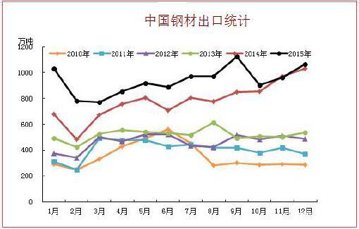 另外,2015鋼材出口約1.1億噸,,但下半年國內鋼產品出口面臨的反傾銷和反補貼調查增多,而中國鋼廠出口多數在東南亞和韓國,中東目前占比較小,所以按照目前相關國家經濟現狀,2016年出口環比增幅難有較大突破。