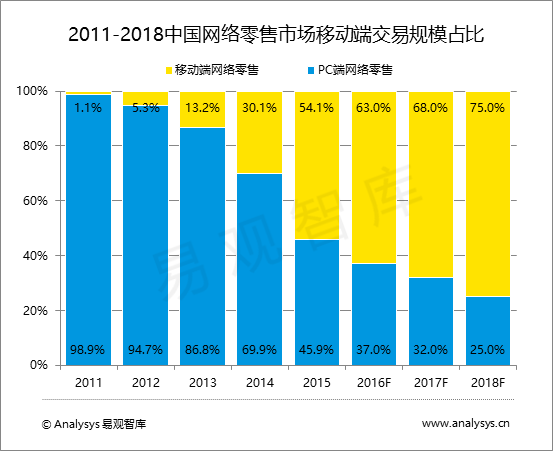 移動網購方面,Analysys易觀智庫預測數據顯示,2015年中國移動網購市場規模將達到20752.7億元人民幣,增長140.8%,其在網上零售市場中的占比將達到54.1%。移動端的重要性已超越PC端,成為網絡零售市場中最重要的入口。