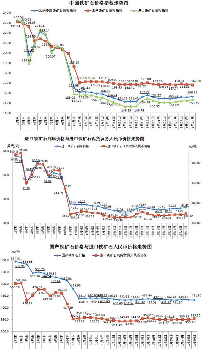 2016年1月29日中國鐵礦石價格指數(shù)對比分析