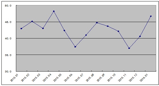 2016年1月鋼鐵行業(yè)PMI指數(shù)分析:兩連升至46.7%