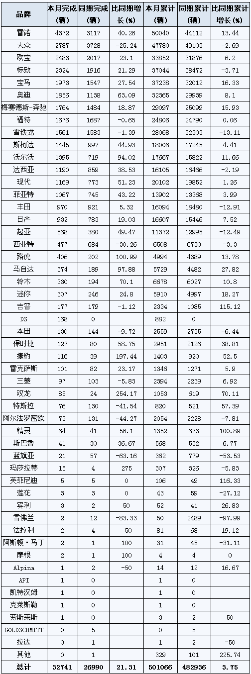 據2015年12月份比利時乘用車(分品牌)注冊量統計,2015年12月注冊量前三的品牌依次是雷諾,大眾和歐寶。