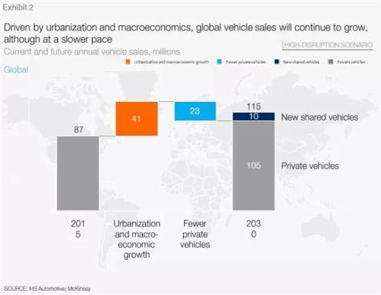 全球汽車總銷量將繼續(xù)增長,但到2030年,銷量增速將從過去五年的3.6%降至2%。這主要是由于宏觀經(jīng)濟的影響,以及汽車共享和在線叫車等出行服務(wù)的增長。