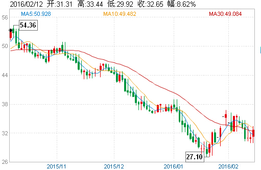 紐約時間2月12日14:30,NYMEX3月原油合約結算價報每桶29.44美元,上漲3.23美元或12.3%,錄得2009年2月以來最大單日百分比漲幅,日高為29.66美元。但該合約本周收低4.7%,今年迄今下滑近21%。