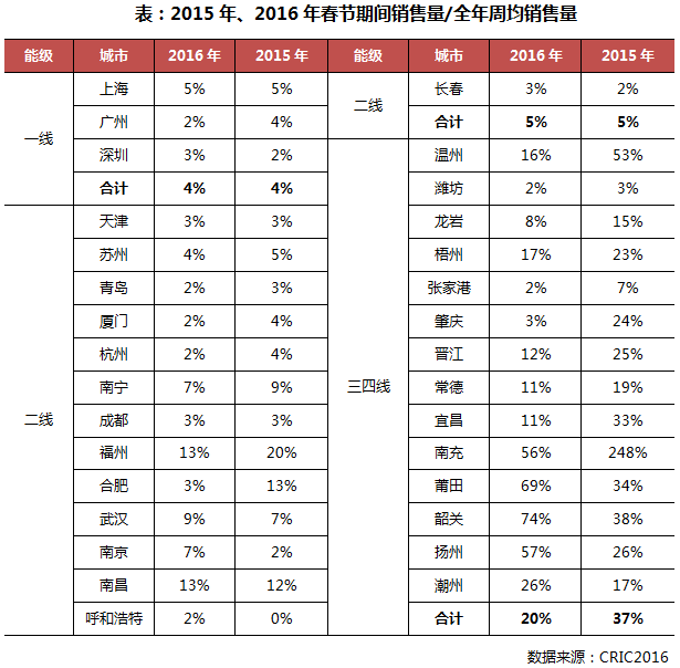 核心提示: 春節作為傳統假日,其樓市表現往往也是新一年關鍵。在節前“央媽”降首付助力下,春節期間銷售略好于往年,返鄉置業的確也帶動部分三四線城市成交。但2016年能否再接春節作為傳統假日,其樓市表現往往也是新一年關鍵。在節前“央媽”降首付助力下,春節期間銷售略好于往年,返鄉置業的確也帶動部分三四線城市成交。但2016年能否再接再厲,還需政策推動以及各地去庫存力度。