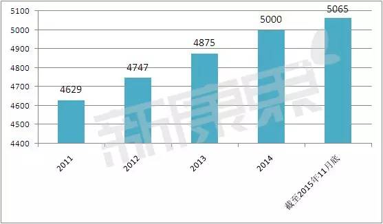 這五年間,全國制藥企業數量增速較平緩。截至2015年11月底,全國藥企數量5065家,僅比2014年多出65家。醫藥行業洗牌正當時,追求質量比數量更重要。