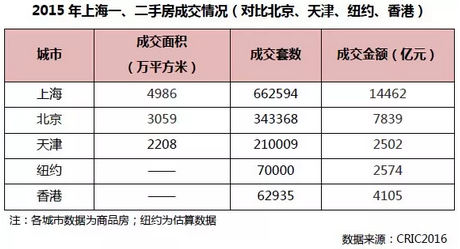 合計上海一、二手房共成交4986萬平方米,成交金額達到1.4萬億元,金額、面積分別比北京高出2000萬平方米和6000億元,同時遠超國內(nèi)其它城市,與全球大都市相比,上海市場容量也高居第一。