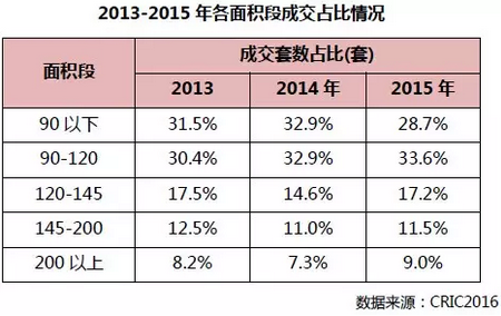 從面積段來看,2015年90-120平方米住宅成交最多,達到4.1萬套,總成交達到415萬平方米;其次是90平方米以下,共成交3.4萬套,成交面積287萬平方。從數(shù)據(jù)上可以看到,90-120平方米占比正在穩(wěn)步上升,占比達到34%,是市場成交主力戶型。若從總價段來看,300-500萬成交增長較快,占比較2014年上漲5個百分點。整體來說,2015年上海市場成交以改善需求為主,大面積戶型需求快速增長。