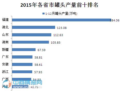 2015年全國罐頭產量排名分析:福建第一 占全國23.4%