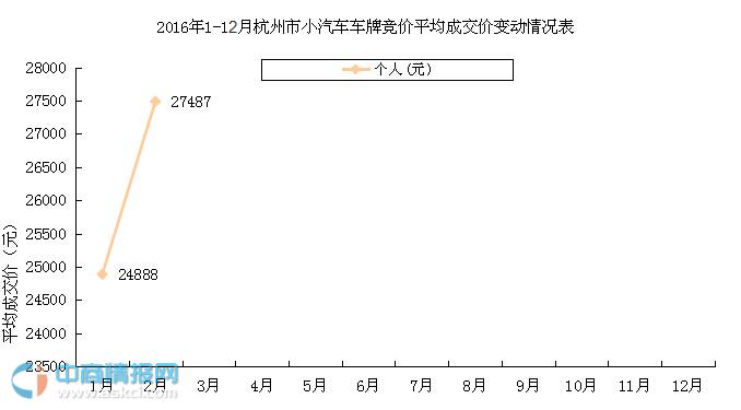 以下為2016年1-12月杭州中小客車車牌個人競價情況: