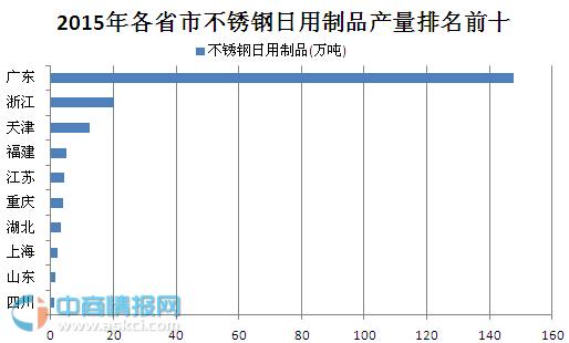 2015年全國不銹鋼日用制品產量前十排名:廣東位居榜首