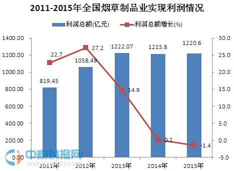 2015年中國煙草制品業營收和利潤統計分析