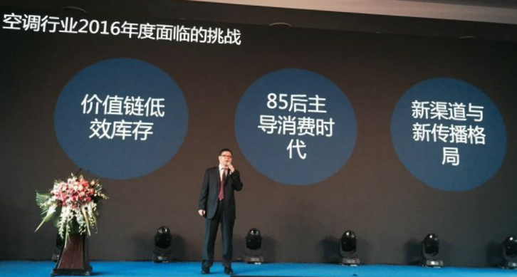 美的集團(tuán)副總裁、家用空調(diào)事業(yè)部總裁吳文新正在演講