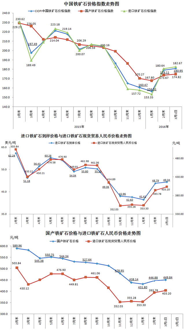 2016年3月1日中國鐵礦石價格指數(shù)對比分析