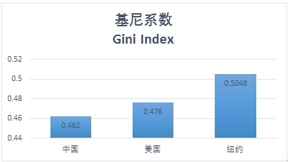 根據(jù)國(guó)家統(tǒng)計(jì)局2015年的數(shù)據(jù)顯示,中國(guó)的基尼系數(shù)為0.462,已經(jīng)連著7年下跌并達(dá)到了15年以來(lái)的最低點(diǎn)。而美國(guó)統(tǒng)計(jì)局公布的數(shù)據(jù)則顯示美國(guó)的基尼系數(shù)比中國(guó)更高,為0.476,而紐約更達(dá)到了0.5048.