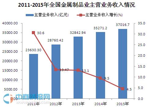 2015年中國金屬制品業(yè)營收和利潤統(tǒng)計分析