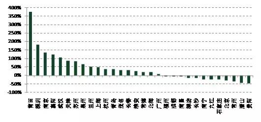圖3 30個典型城市新建商品住宅成交面積同比增幅排行