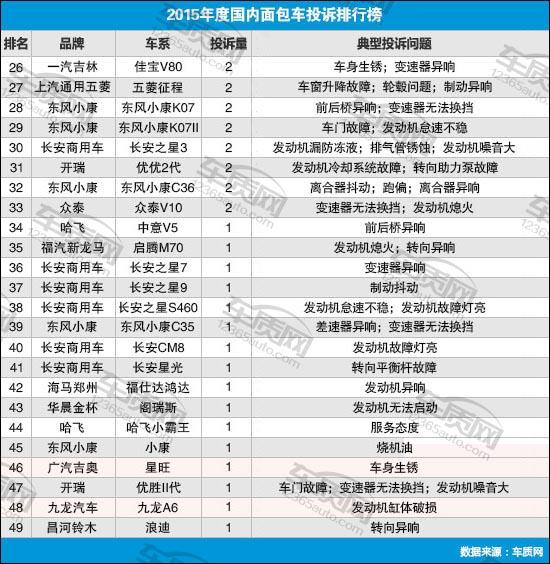 2015年中國(guó)面包車車型投訴量排名情況及分析