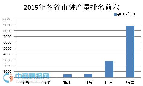 2015年全國鐘產(chǎn)量前六排名:福建位居榜首