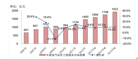2006-2015年中國油氣鉆井工程服務(wù)市場規(guī)模