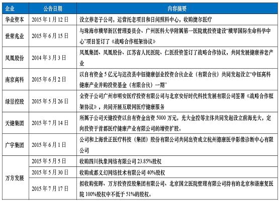 2015年中國房地產企業轉型醫療健康養老具體內容