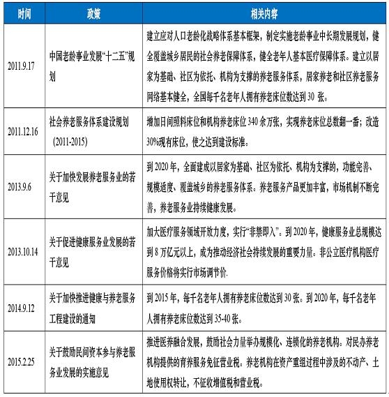 2011-2015年中國養老健康產業相關政策頻繁出臺