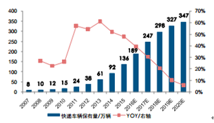 每年新增快遞車輛將在 2017 年迎來采購高峰期
