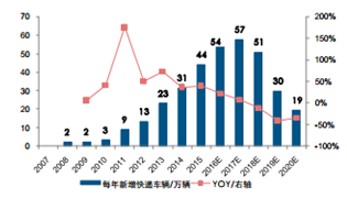 2007-2020年快遞車輛保有量預計未來 5 年復合增速 21%