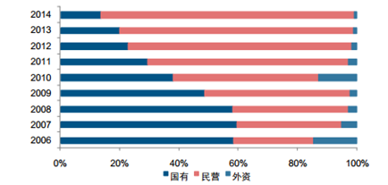 2006-2014年快遞行業“國退民進”(快遞業務量占比)