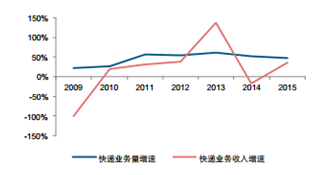 2009-2015年快遞業務收入增速普遍低于業務量增速