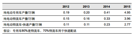 2012-2015 年純電動物流車產量情況