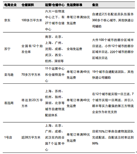 http://www.chyxx.com/research/201603/390916.htmlB2C 電商以大型物流倉儲中心為據點,通過大數據實現合理分倉調配,壓縮干線運輸時間,從而在配送頻率和配送時效上能夠超越第三方快遞公司。截至 2014 年 9 月,京東在全國范圍內擁有 7 大物流中心,在 39 個城市建立了 118 個倉庫,總面積達到 230 萬平方米,運營 2,045 個配送站和 1,045 個自提點,覆蓋全國范圍內的 1,855 個區縣。京東在 130 個區縣提供當天送達的“211 限時達”服務,并在另外 815 個區縣提供次日達的配送服務。