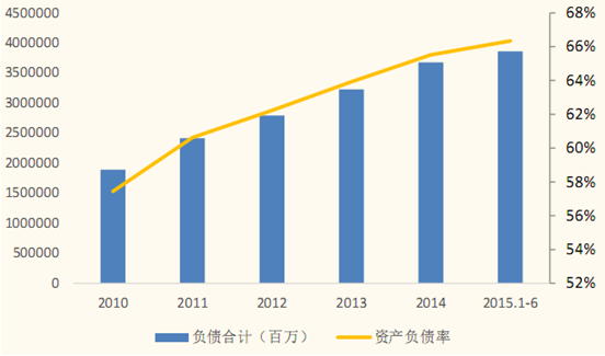 2010-2015年中國鐵總負債情況