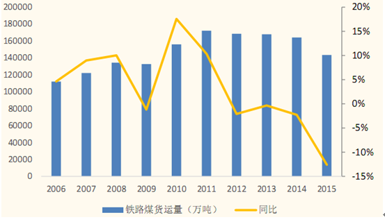 2006-2015年鐵路煤貨運量(萬噸)